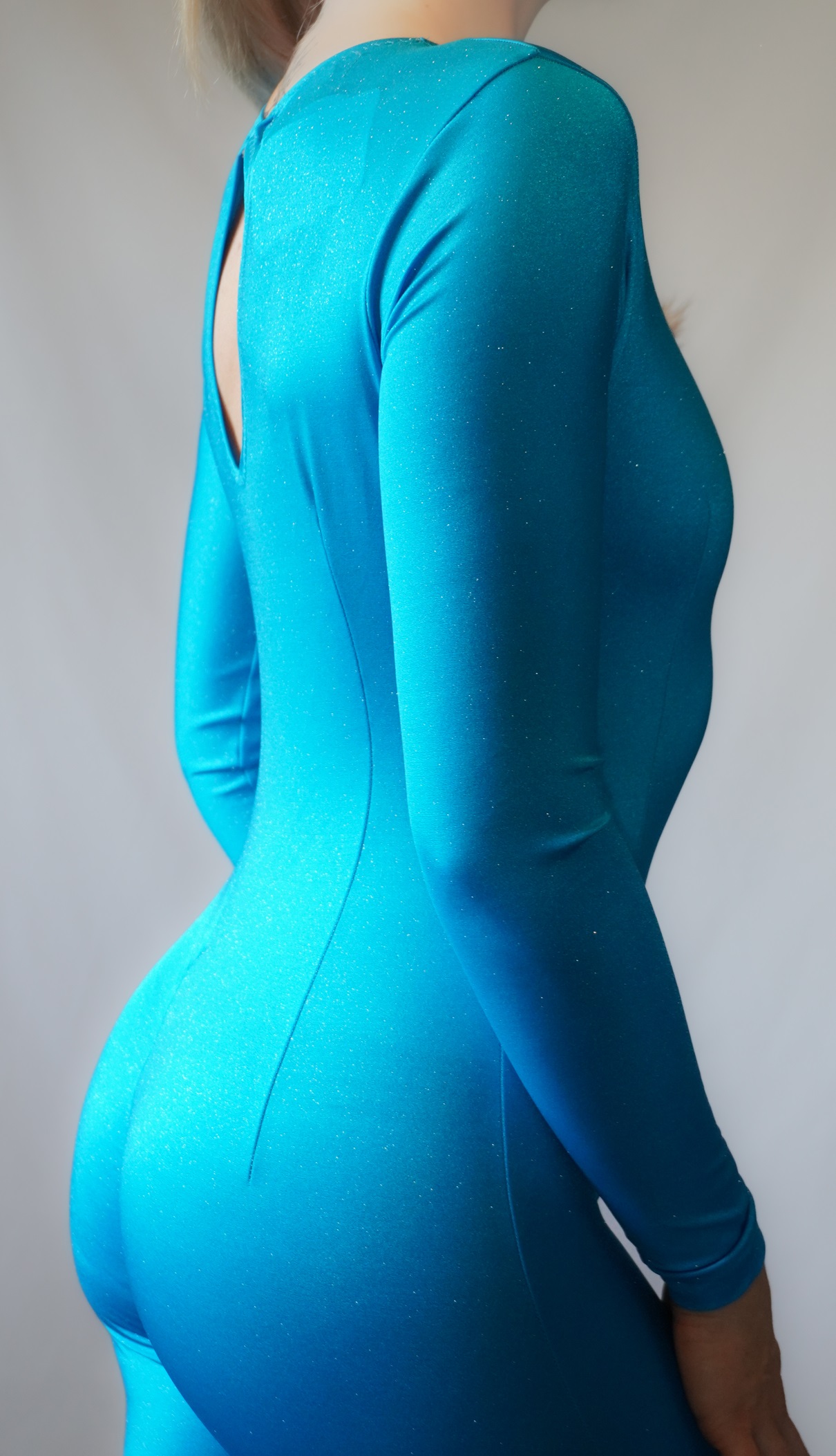 Lycra in Türkis mit einer feinen Glitzerbeschichtung.