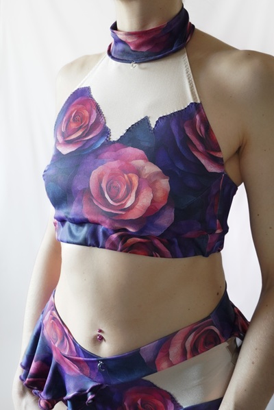 Oberteil aus weichem Lycr mit Rosenmotiv