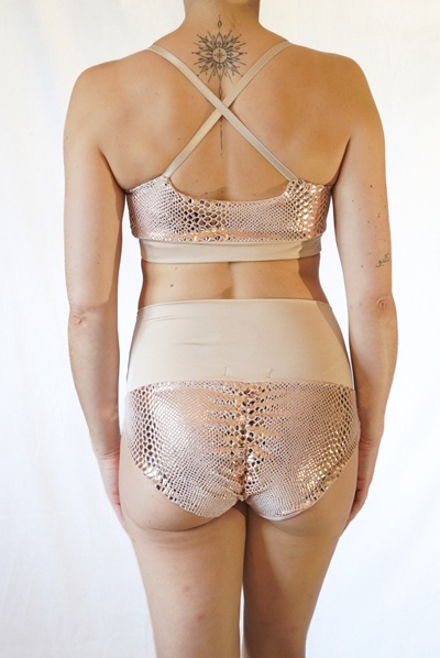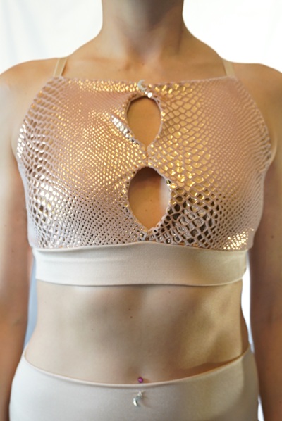 Champagner farbenes Sportsamt Oberteil mit glatter Beschichtung im Schlangenschuppen look