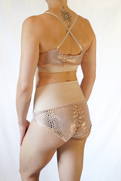 Champagner farbenes Snake Samt Oberteil mit nude- farbenem Innenfutter und Bünde